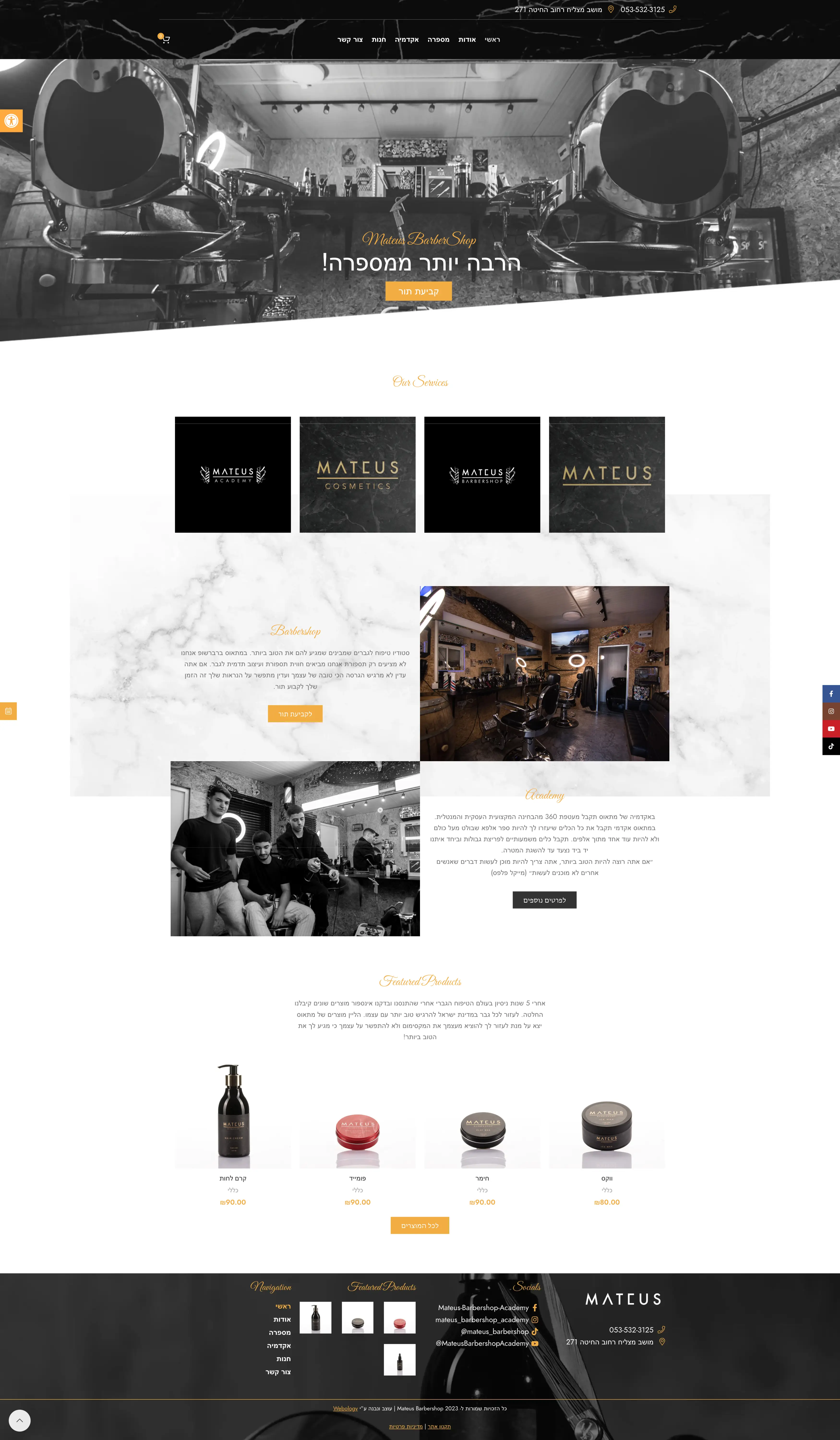 Mateus פנו אלינו לצורך בניית אתר חנות מודרני ומעוצב, תוך שמירה על מסגרת תקציבית יעילה.
